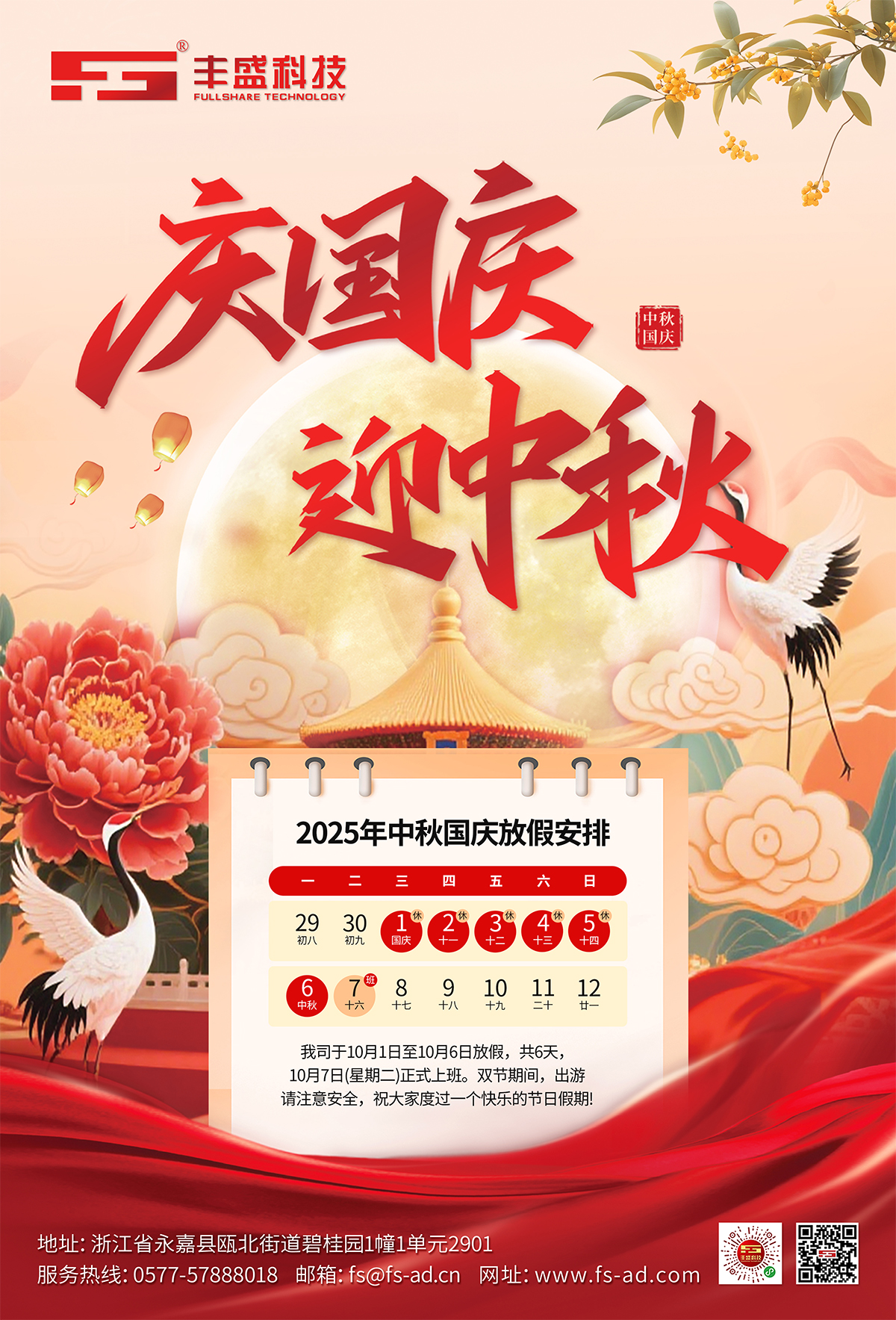 發(fā)布日期:2025-09-30 14:34:46錦繡中華,喜迎華誕;皓月當(dāng)空,情滿中秋。值此國慶中秋雙節(jié)之際,